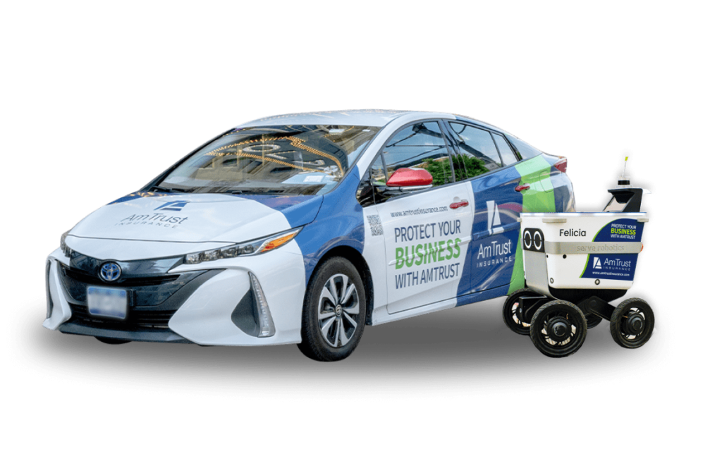 A Nickelytics-wrapped vehicle and delivery robot.